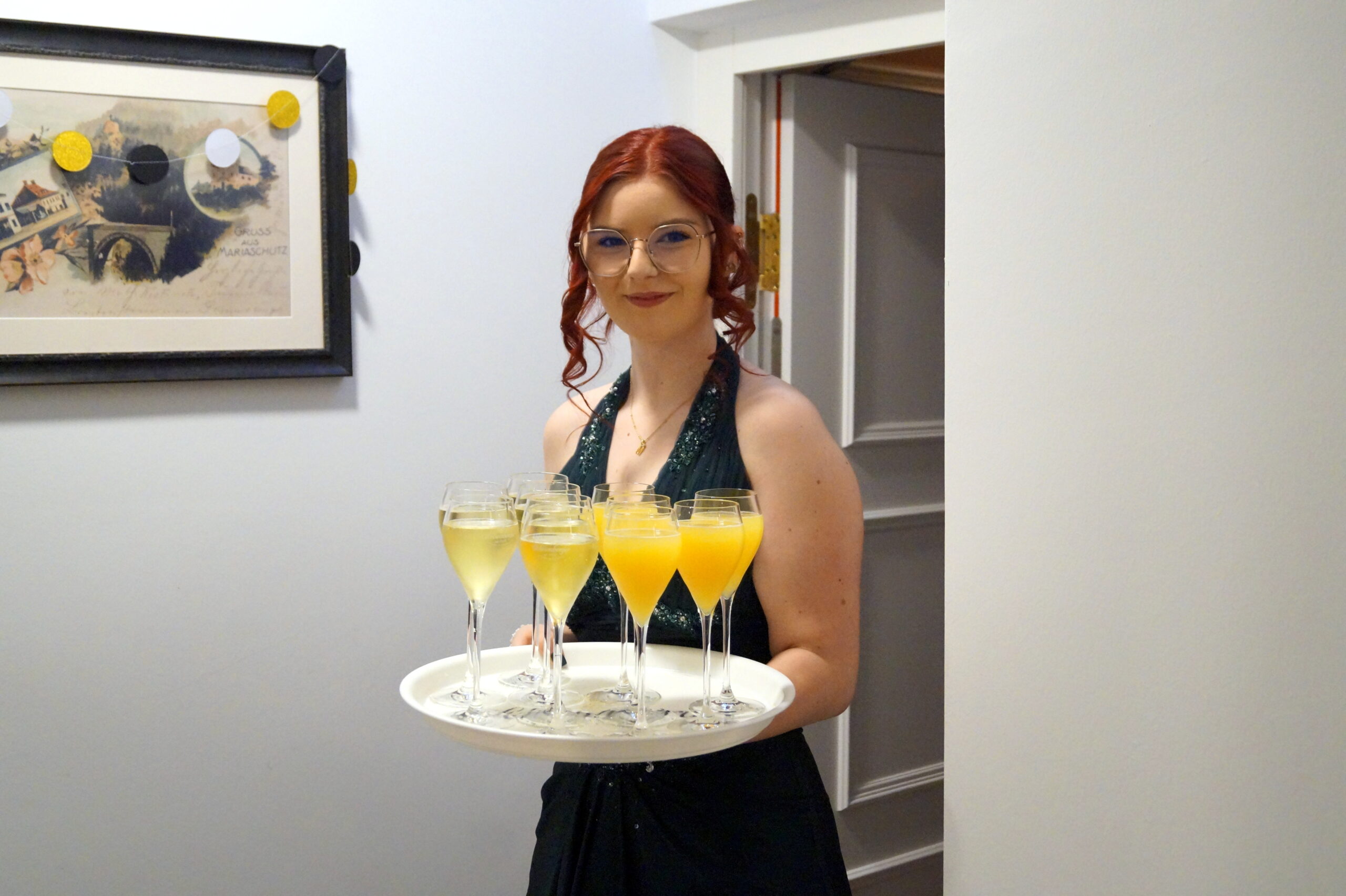 Bereits am Eingang wurden die Gäste mit einem Sektempfang willkommen geheißen. Für die Damen gab es eine liebevoll vorbereitete Damenspende.
